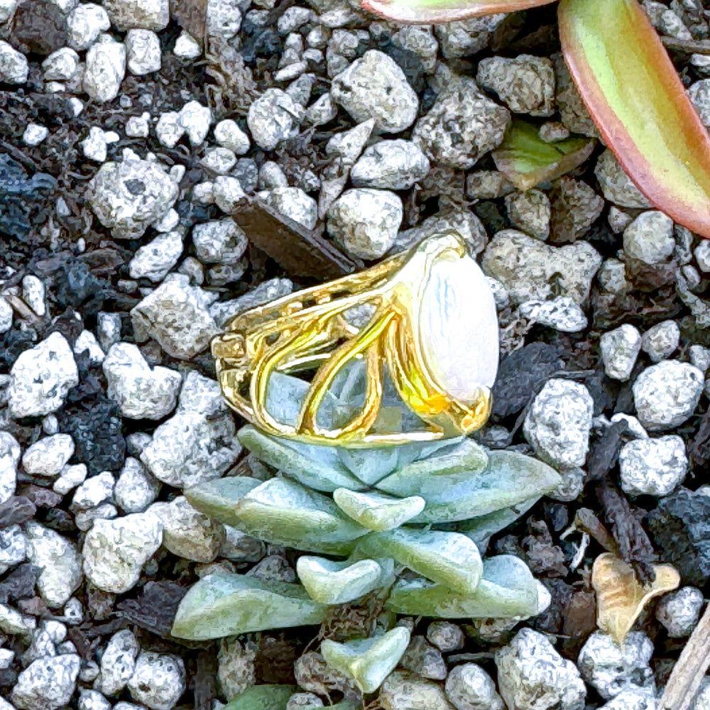 Standing before the Kilauea Volcano, I watched molten lava move with a grace that felt both powerful and otherworldly. That moment inspired me to design a collection that echoed its organic, free-flowing nature. Every piece in the Lava Line is shaped around a pearl, gemstone, shell, or glass, giving each creation a personality as unique as the island that inspired it.